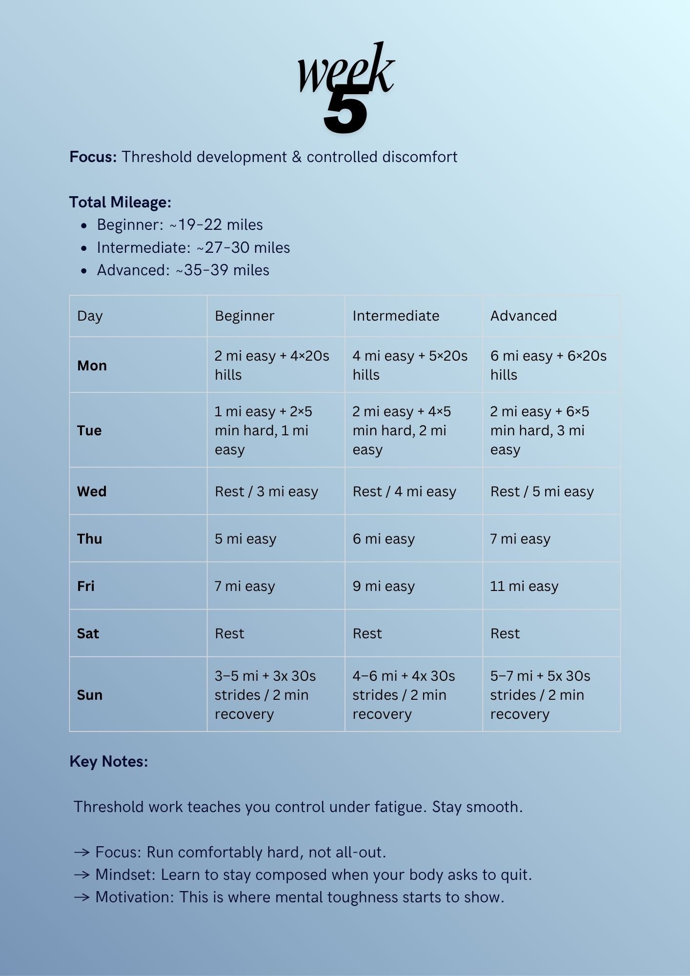 Whether your running to get fit, or preparing for a race, this 12 week plan is designed for runners looking to level up their endurance and speed while staying strong and consistent.